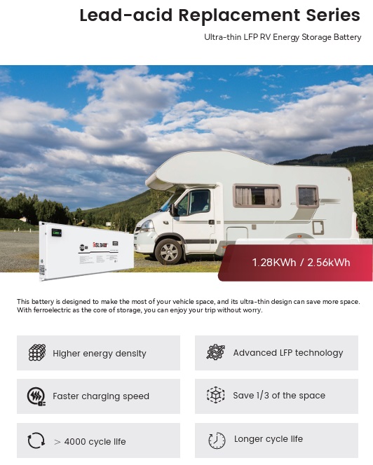 BSL Flat Pack RV Battery is designed to make the most of your vehicle space, and its ultra-thin design can save more space. With ferroelectric as the core of storage, you can enjoy your trip without worry.